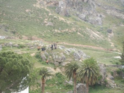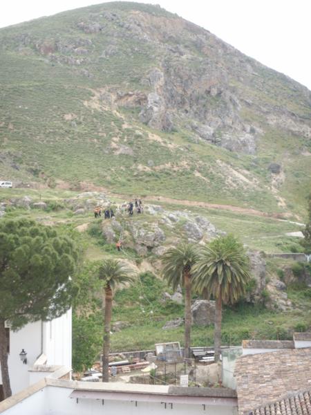 Panorámica parcial del “Complejo Educativo Ribera-Henchidero” (Izquierda) , Prácticas de descenso vertical por cuerda en la zona donde nuestro proyecto recoge construir un mirador (Derecha)
