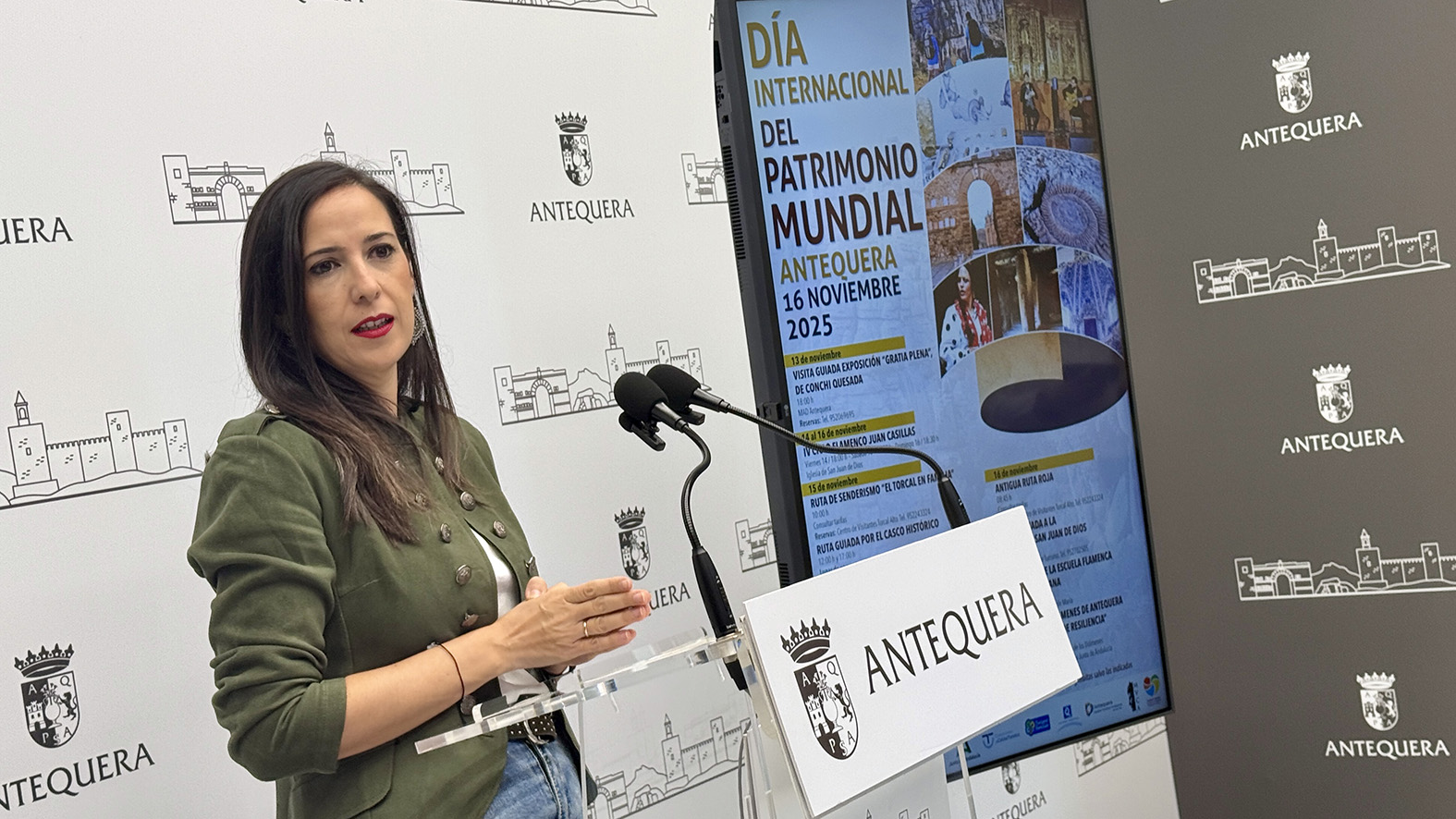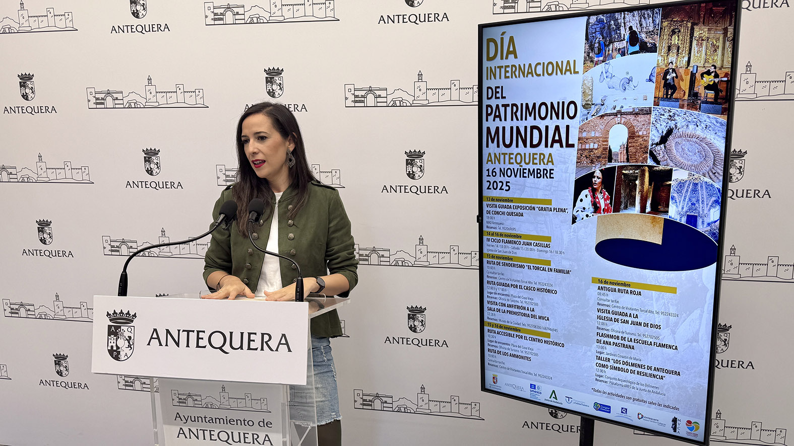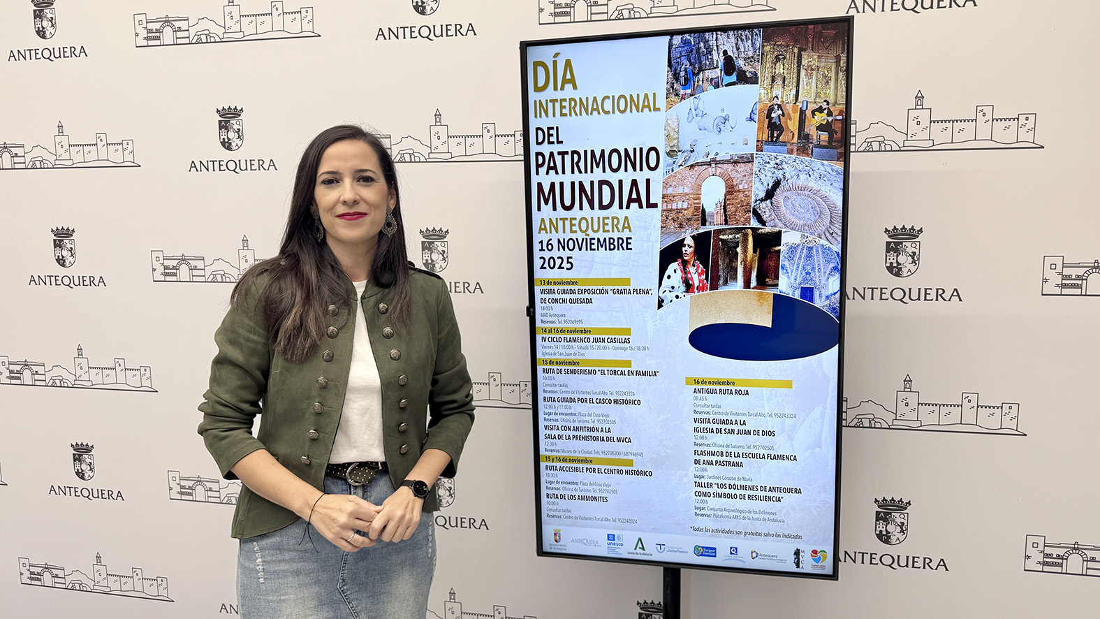 La teniente de alcalde Ana Cebrián ha presentado el programa de actividades del Día Internacional del Patrimonio Mundial, que Antequera celebrará del 13 al 16 de noviembre con rutas, visitas guiadas y eventos culturales. La programación incluye propuestas en torno a El Torcal, los Dólmenes, el Flamenco y el patrimonio histórico de la ciudad, consolidando a Antequera como referente andaluz en la gestión y promoción del Patrimonio Mundial.