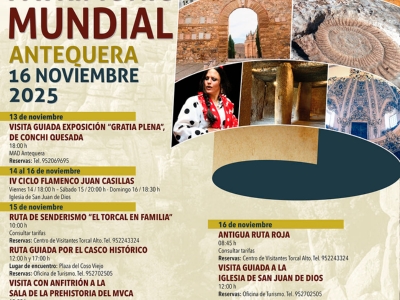 El programa incluye una amplia variedad de visitas guiadas, rutas de senderismo, actividades culturales y experiencias en torno al patrimonio histórico, natural e inmaterial. Entre ellas destacan la visita guiada a la exposición “Gratia Plena” en el MAD de Antequera, el IV Ciclo Flamenco Juan Casillas, la Ruta de Senderismo “El Torcal en familia”, las visitas a la Sala de la Prehistoria del MVCA, o las rutas guiadas por el casco histórico y accesibles por el centro urbano.