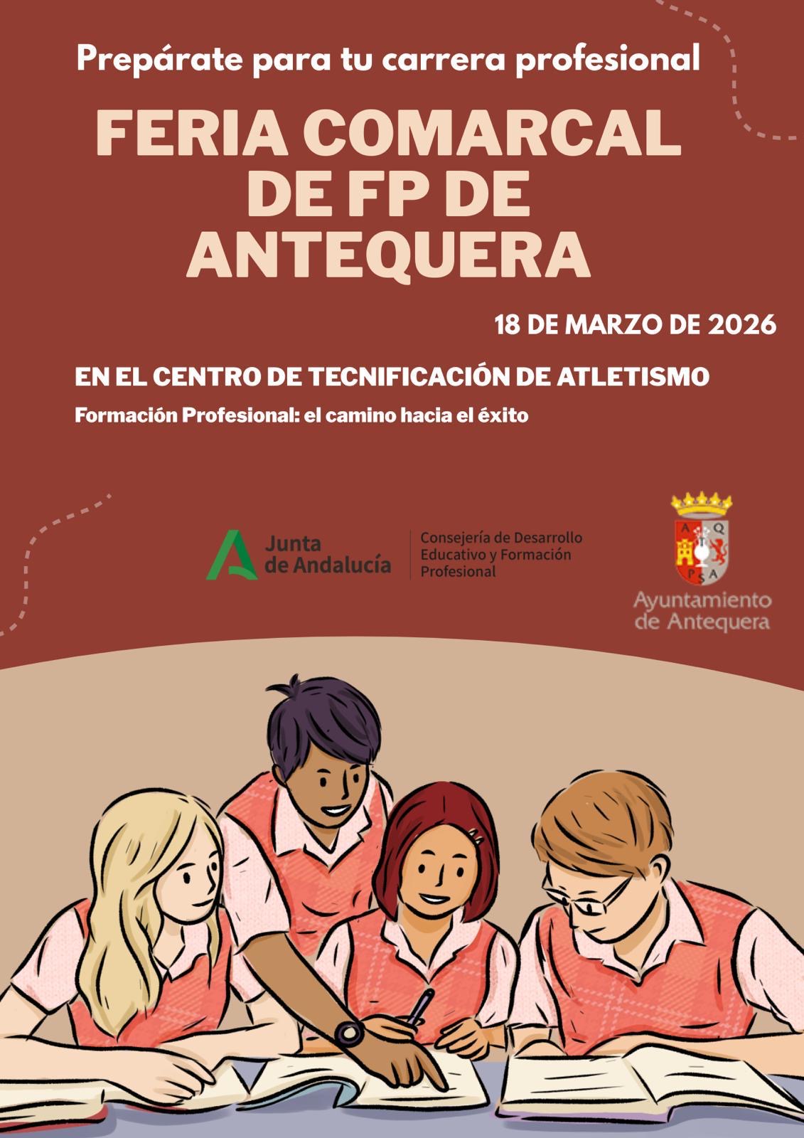 Una cita, coordinada por el Ayuntamiento de Antequera y la Delegación Territorial de Educación, de la Junta de Andalucía, en Málaga, se celebrará el próximo 18 de marzo en el Centro de Tecnificación de Atletismo, bajo el lema ‘Prepárate para tu carrera profesional. Formación Profesional: el camino hacia el éxito'.