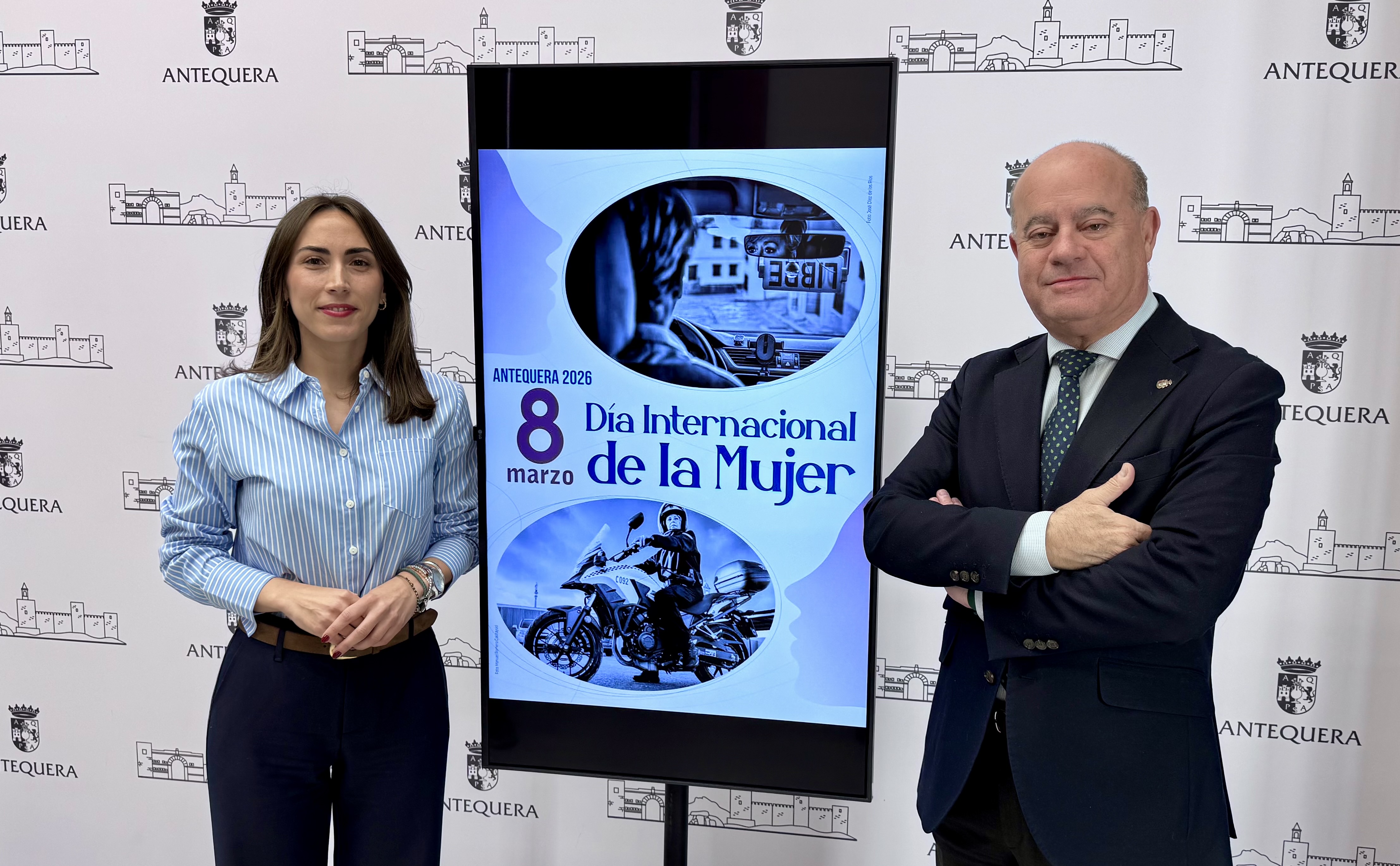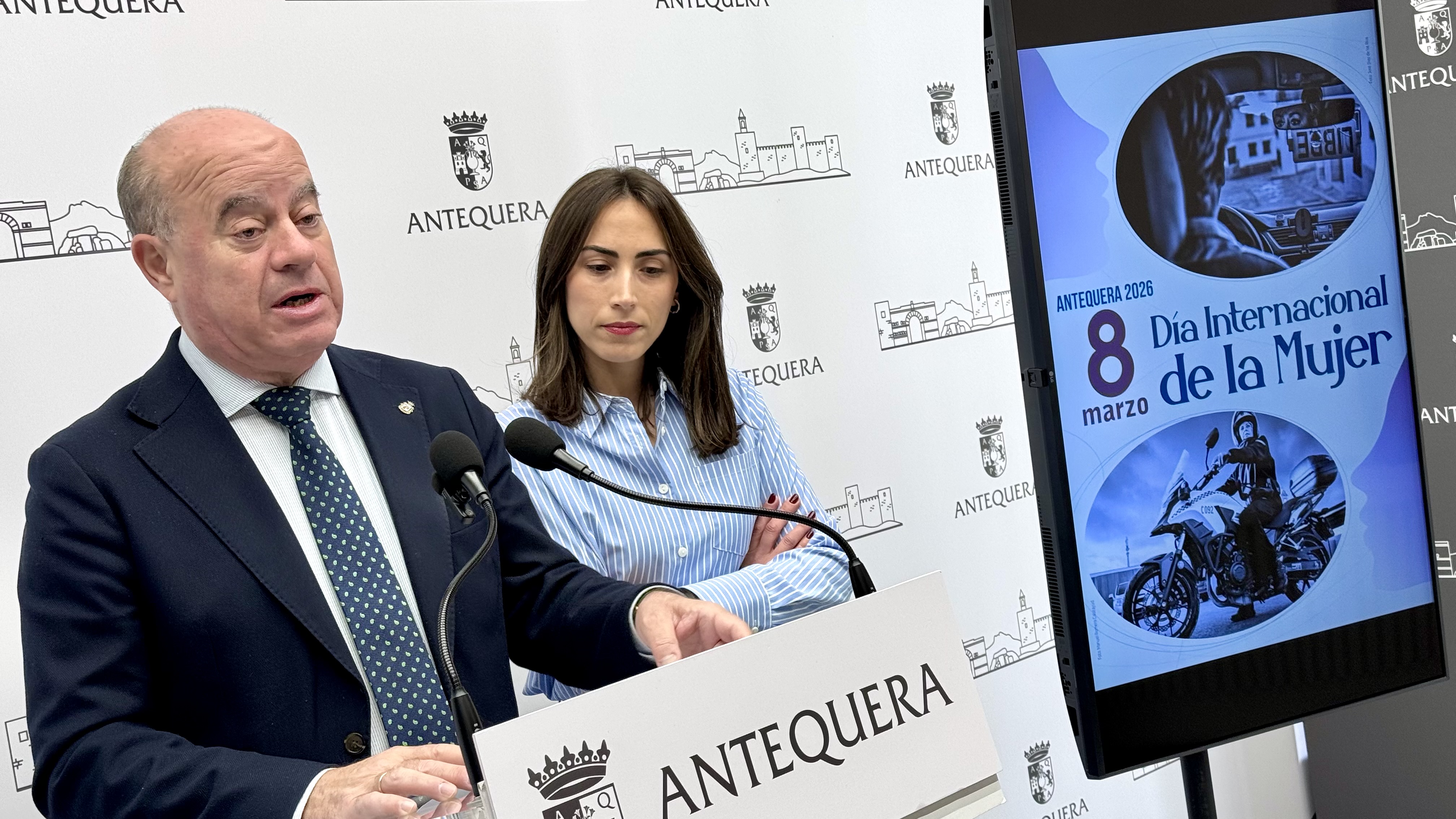 El alcalde Manolo Barón y la concejal de Equidad del Ayuntamiento de Antequera, María Sierras, han presentado esta mañana en rueda de prensa la programación especial con motivo del Día Internacional de la Mujer.