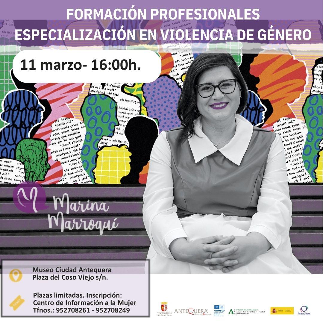 Imparte Marina Marroquí. Educadora social y especialista en Violencia de Género. Tendrá lugar en el MVCA - Museo de la Ciudad de Antequera a las 16:00h. Inscripción en el Centro de Información a la Mujer.