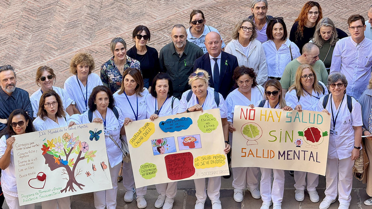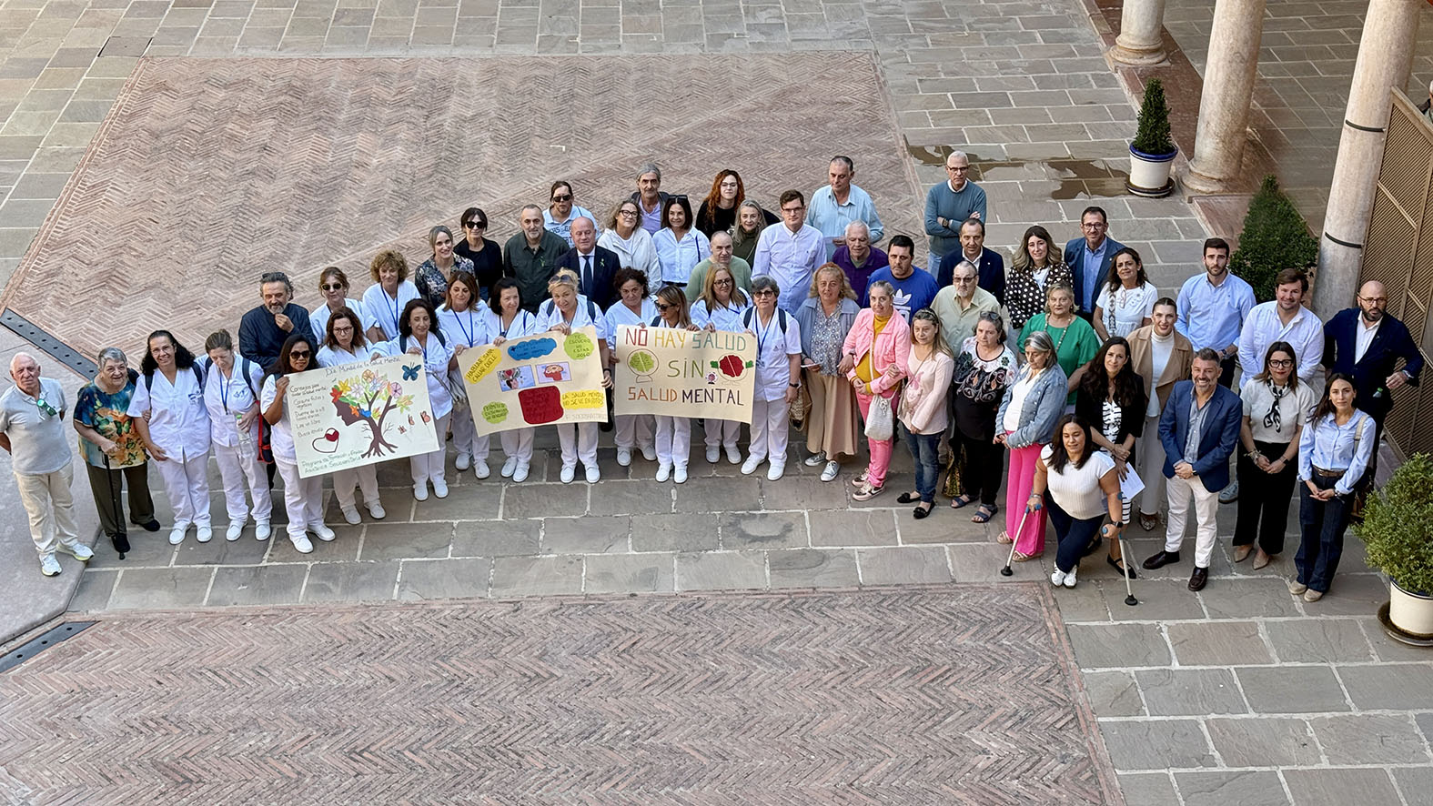 El alcalde de Antequera, Manolo Barón, ha presidido en la mañana de hoy viernes 10 de octubre un acto conmemorativo del Día Mundial de la Salud Mental, celebrado en el patio del Ayuntamiento con la participación de los portavoces de los tres grupos políticos con representación municipal, así como de usuarios, técnicos y familiares del Centro Social FAISEM de Antequera.