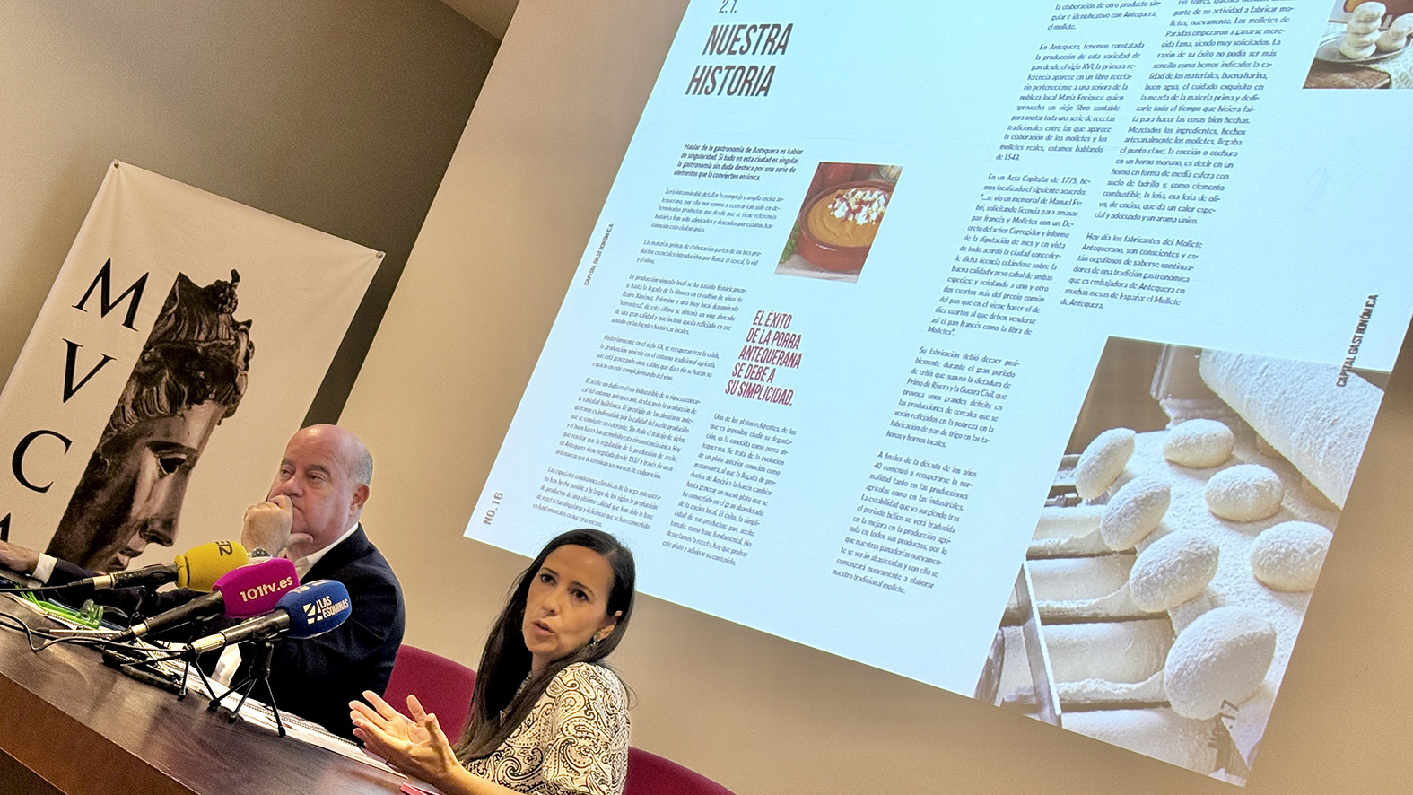 El alcalde de Antequera, Manolo Barón, y la teniente de alcalde delegada de Turismo, Comercio y Patrimonio Mundial, Ana Cebrián, han dado a conocer en el Museo de la Ciudad el dossier oficial con el que Antequera opta a convertirse en Capital Española de la Gastronomía 2026.