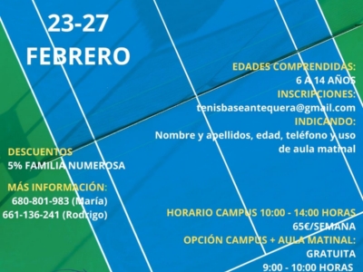 tenisbaseantequera@gmail.com, indicando: nombre y apellidos, edad, teléfono y uso de aula matinal.