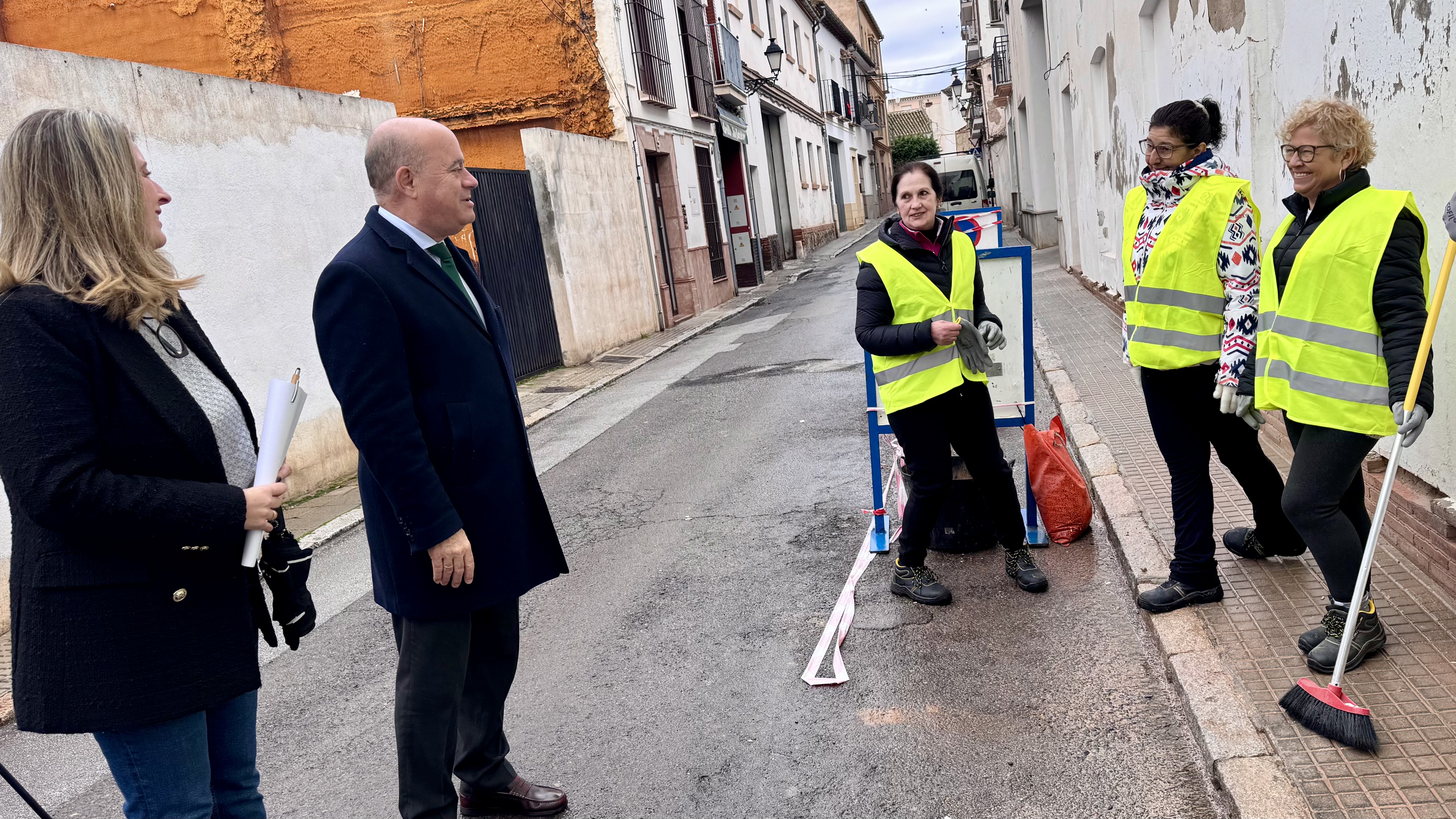 El alcalde Manolo Barón, acompañado por la teniente de alcalde delegada de Obras y Mantenimiento, Teresa Molina, informan de la puesta en marcha de las obras PFEA 2026 en rueda de prensa desde Calle de Aguardenteros, uno de los puntos principales a remodelar