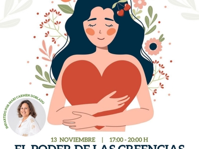 Le seguirán dos talleres de crecimiento personal y gestión emocional, a cargo de Carmen Doblado, titulados El poder de las creencias (13 de noviembre) y El poder del perdón (20 de noviembre), ambos también en el Salón de Actos de Servicios Sociales.