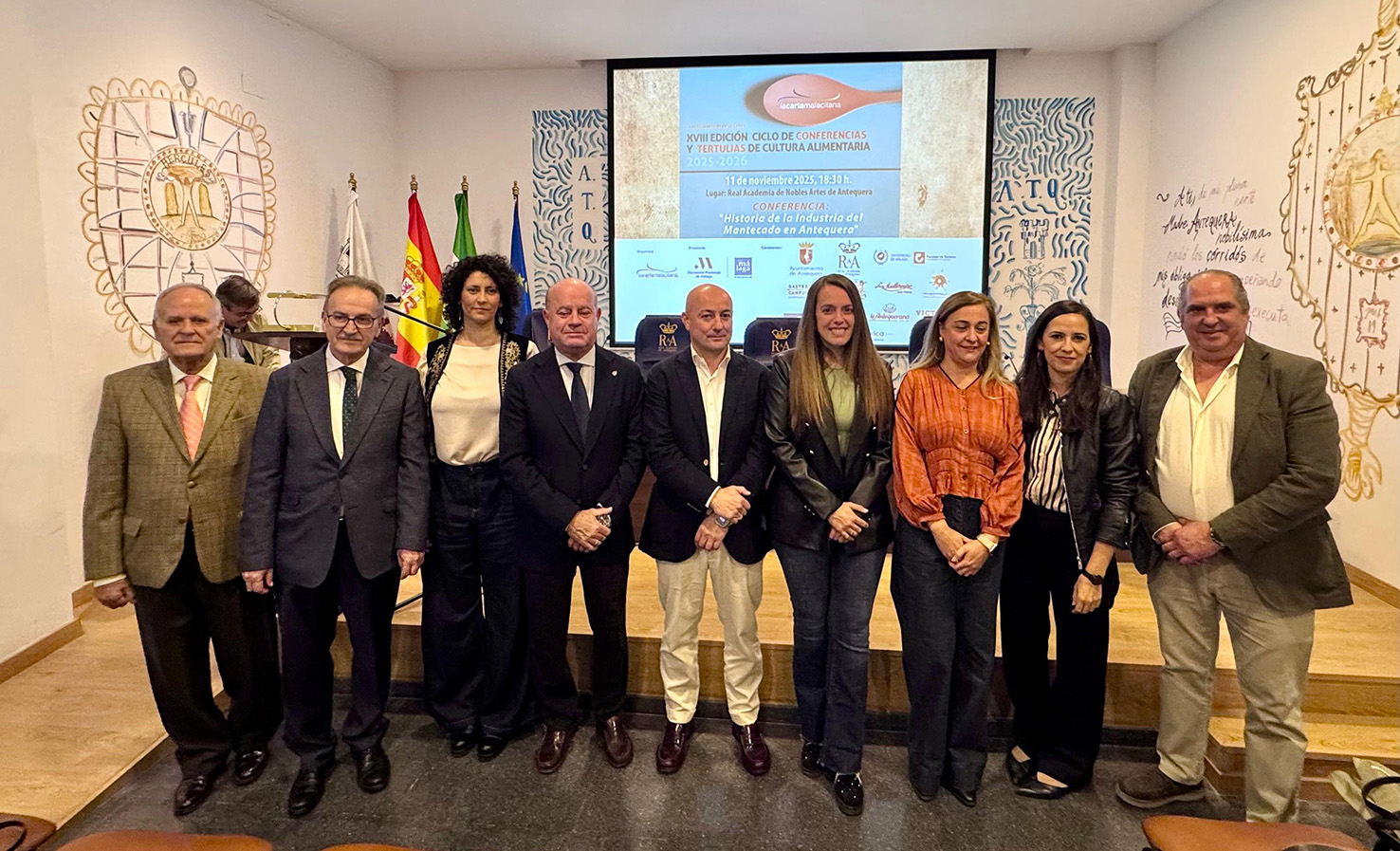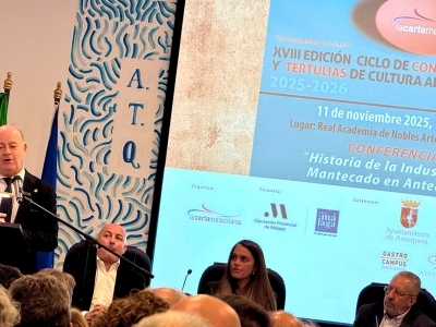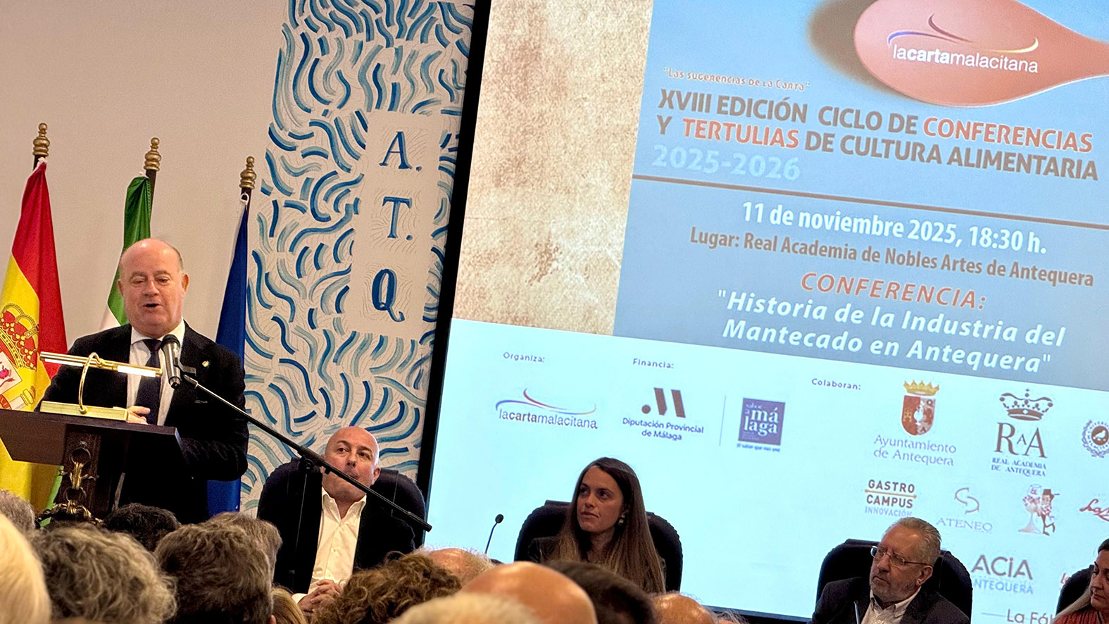 La Real Academia de Nobles Artes de Antequera ha acogido este martes 11 de noviembre la conferencia «Historia de la industria del mantecado en Antequera», promovida por La Carta Malacitana dentro de su XVIII Ciclo de Conferencias y Tertulias de Cultura Alimentaria 2025/2026. Se trata de la primera vez que esta entidad gastronómica desarrolla una de sus sesiones fuera de Málaga capital, eligiendo Antequera por su fuerte arraigo histórico y empresarial en torno al mantecado.