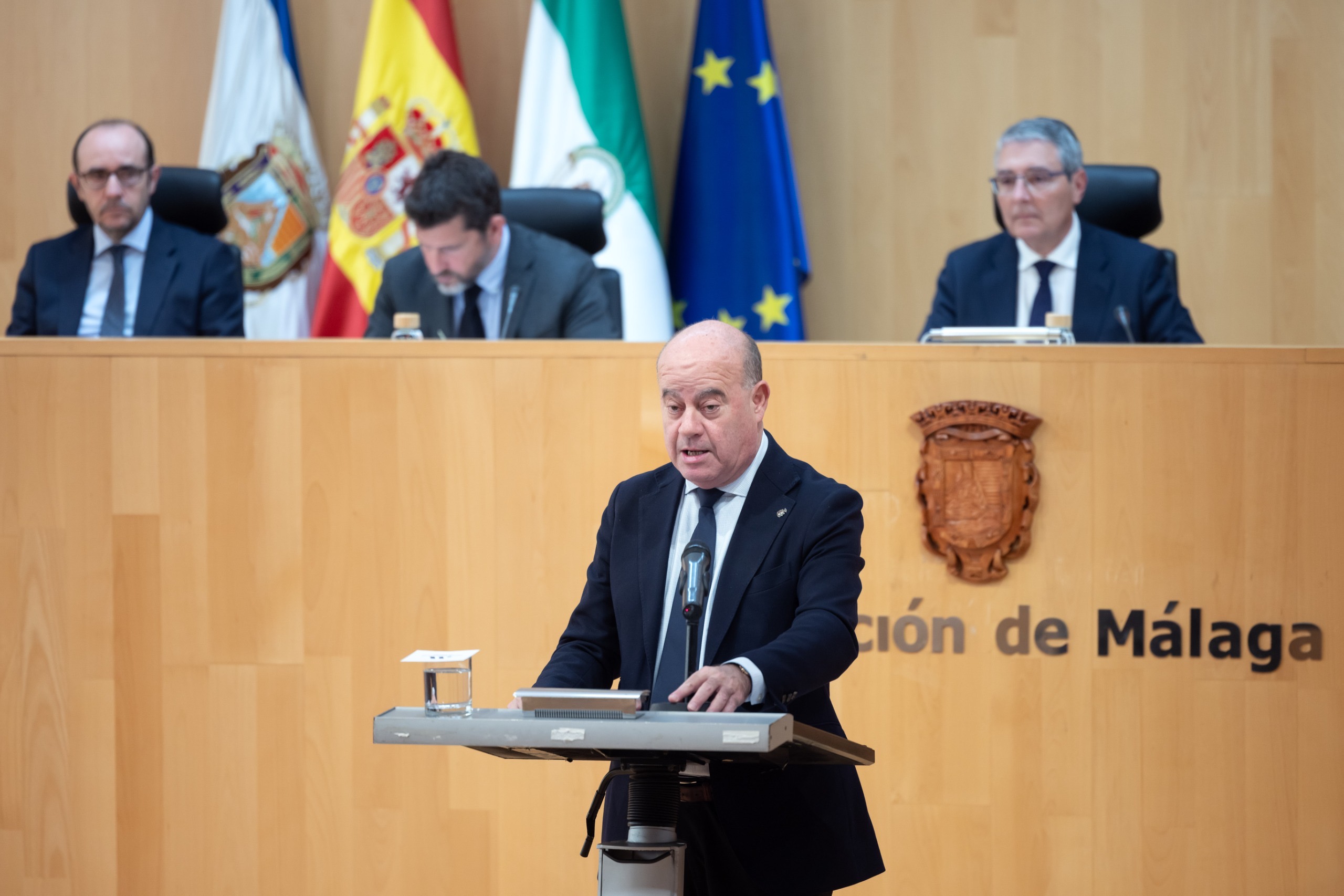 El alcalde de Antequera, Manolo Barón, reclama "respeto al reparto competencial del Estado" en la Tribuna de Alcaldes de la Diputación de Málaga