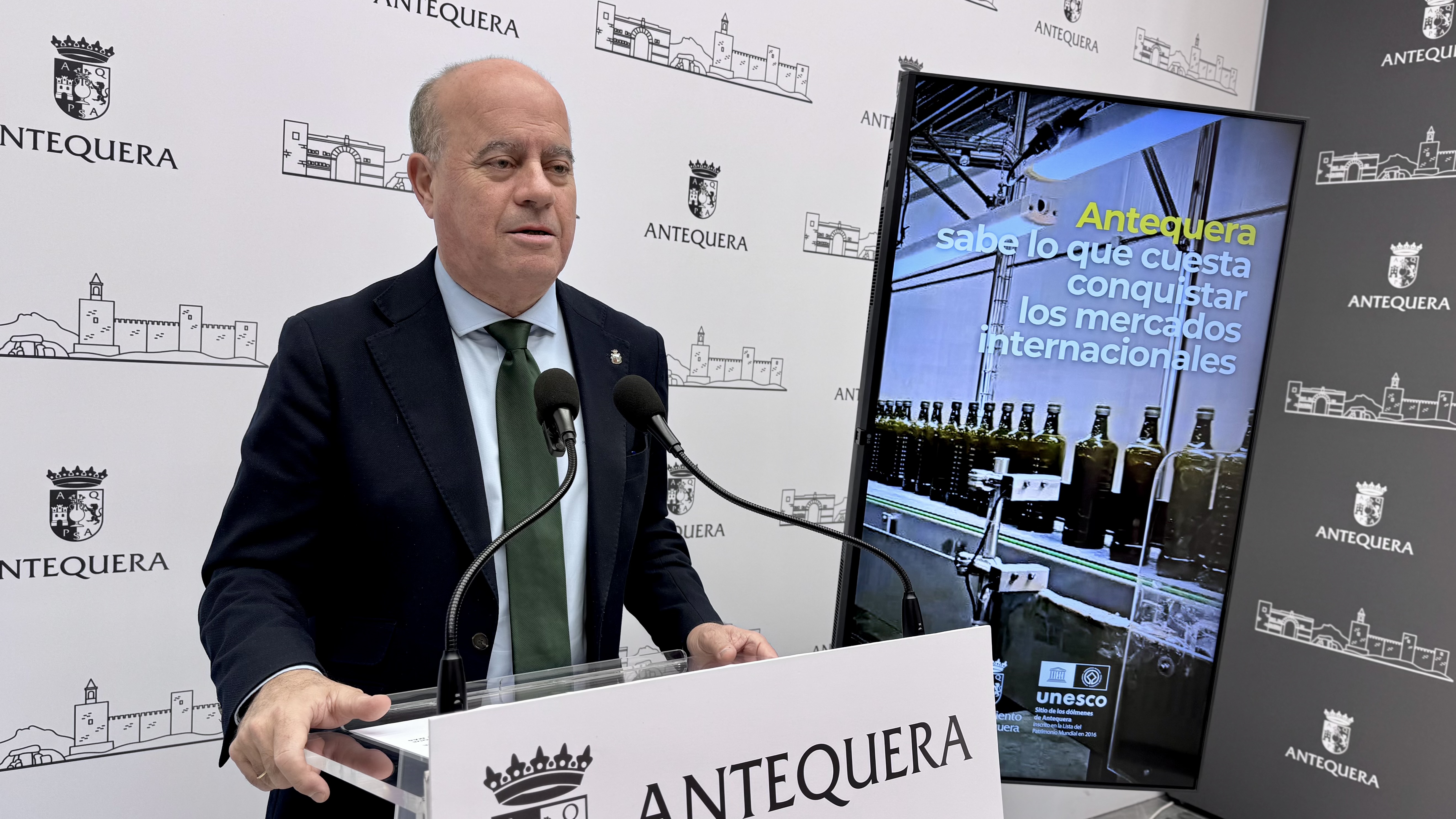 El alcalde de Antequera ha mostrado su profunda preocupación por la situación de incertidumbre que viven agricultores, cooperativas y empresas del sector agroalimentario ante las posibles medidas comerciales que podrían afectar gravemente a productos estratégicos como el aceite de oliva, el vino o la aceituna de mesa.