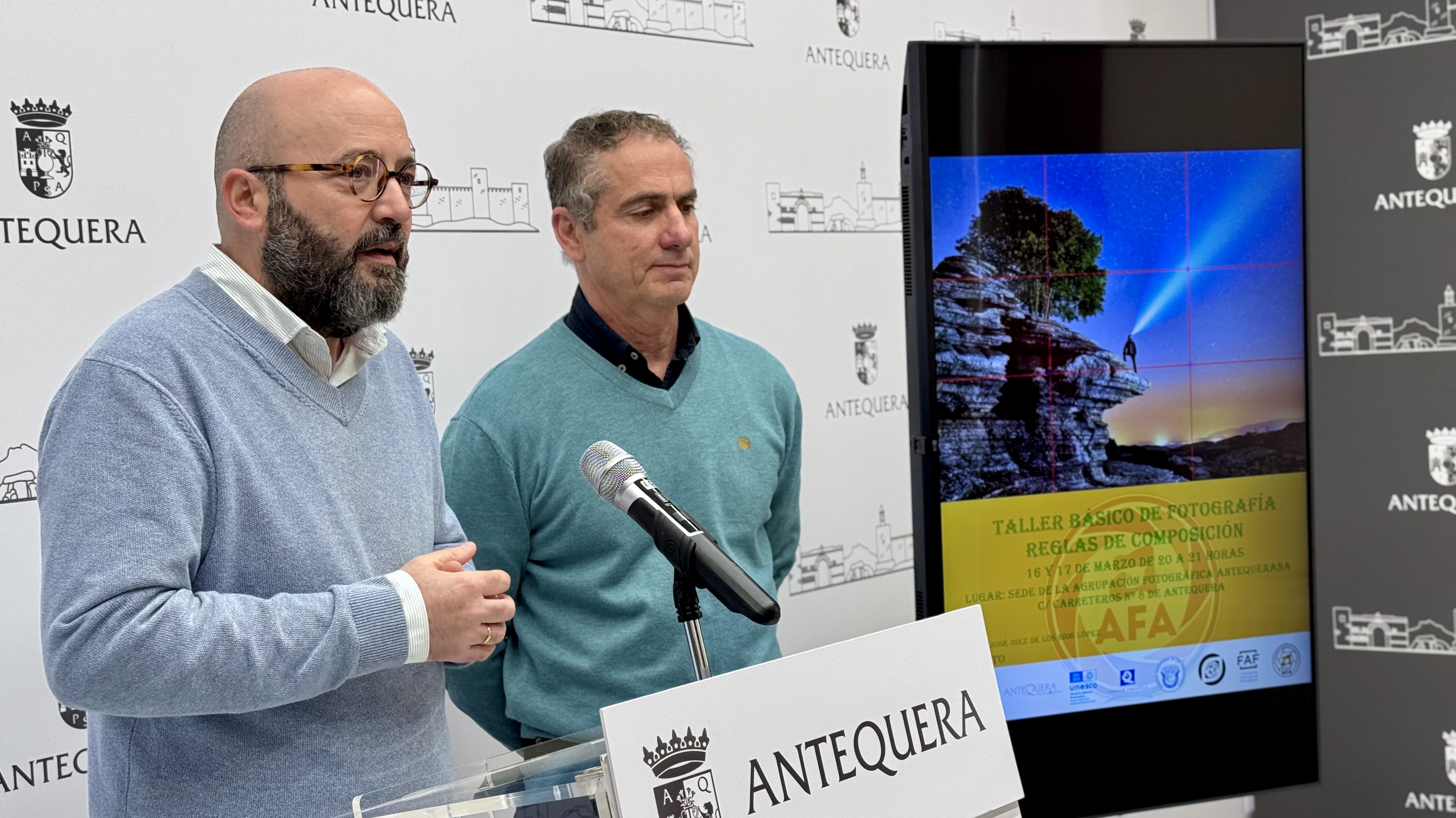 El responsable del área de Cultura, José Medina, y el presidente de AFA Agrupación Fotográfica Antequerana, José Díez de los Ríos, han presentado hoy martes en rueda de prensa esta actividad.