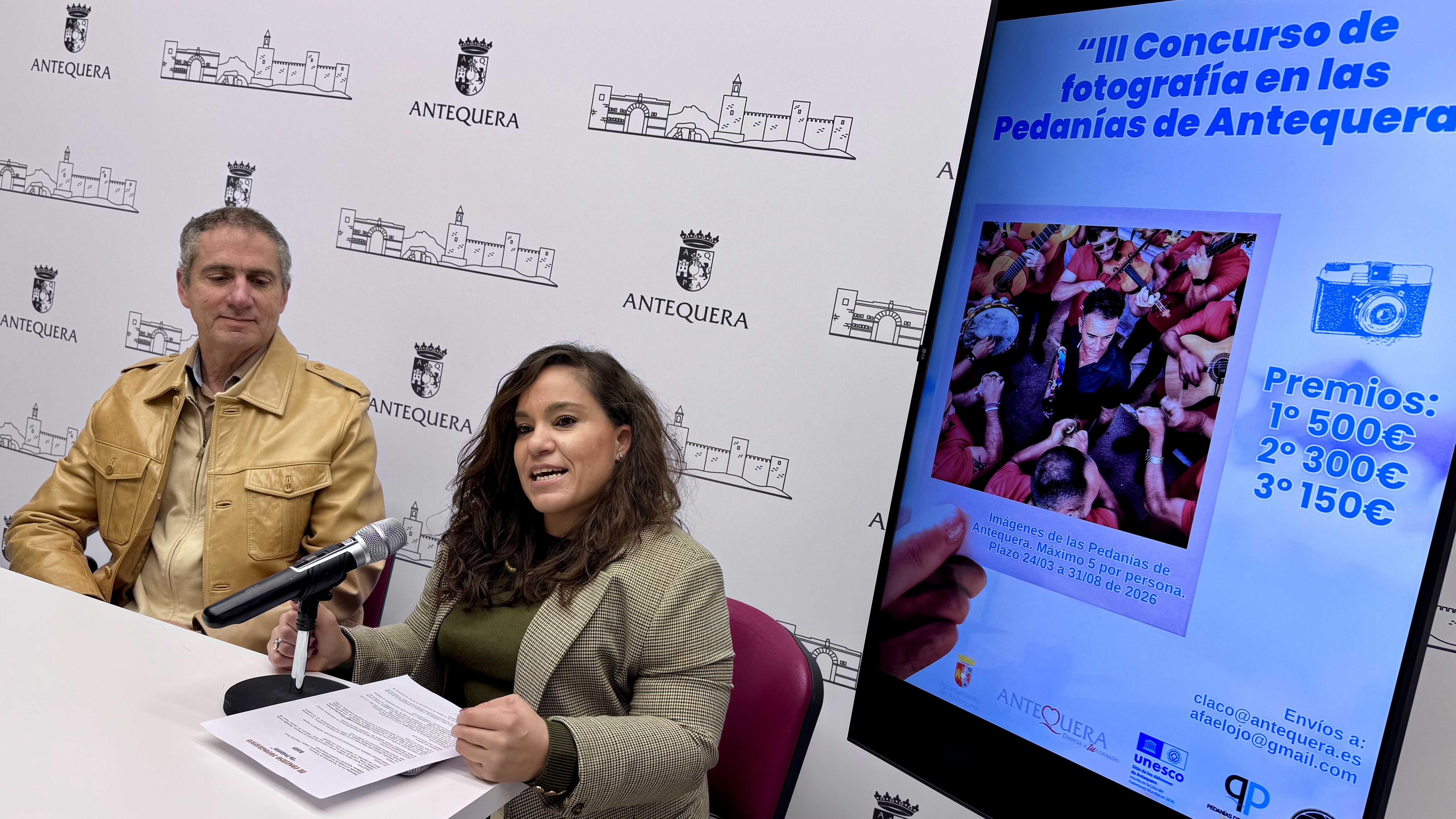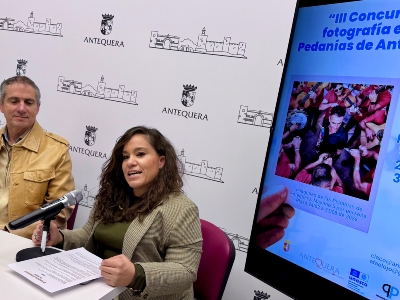 La responsable de Pedanías, Sara Ríos, y José Díez de los Ríos, presidente de AFA-Agrupación Fotográfica Antequerana anuncia la apertura de la tercera edición del Concurso de Fotografía en las Pedanías, una iniciativa que invita a profesionales y aficionados a capturar la esencia, la cultura y el patrimonio de los núcleos rurales que rodean la ciudad.