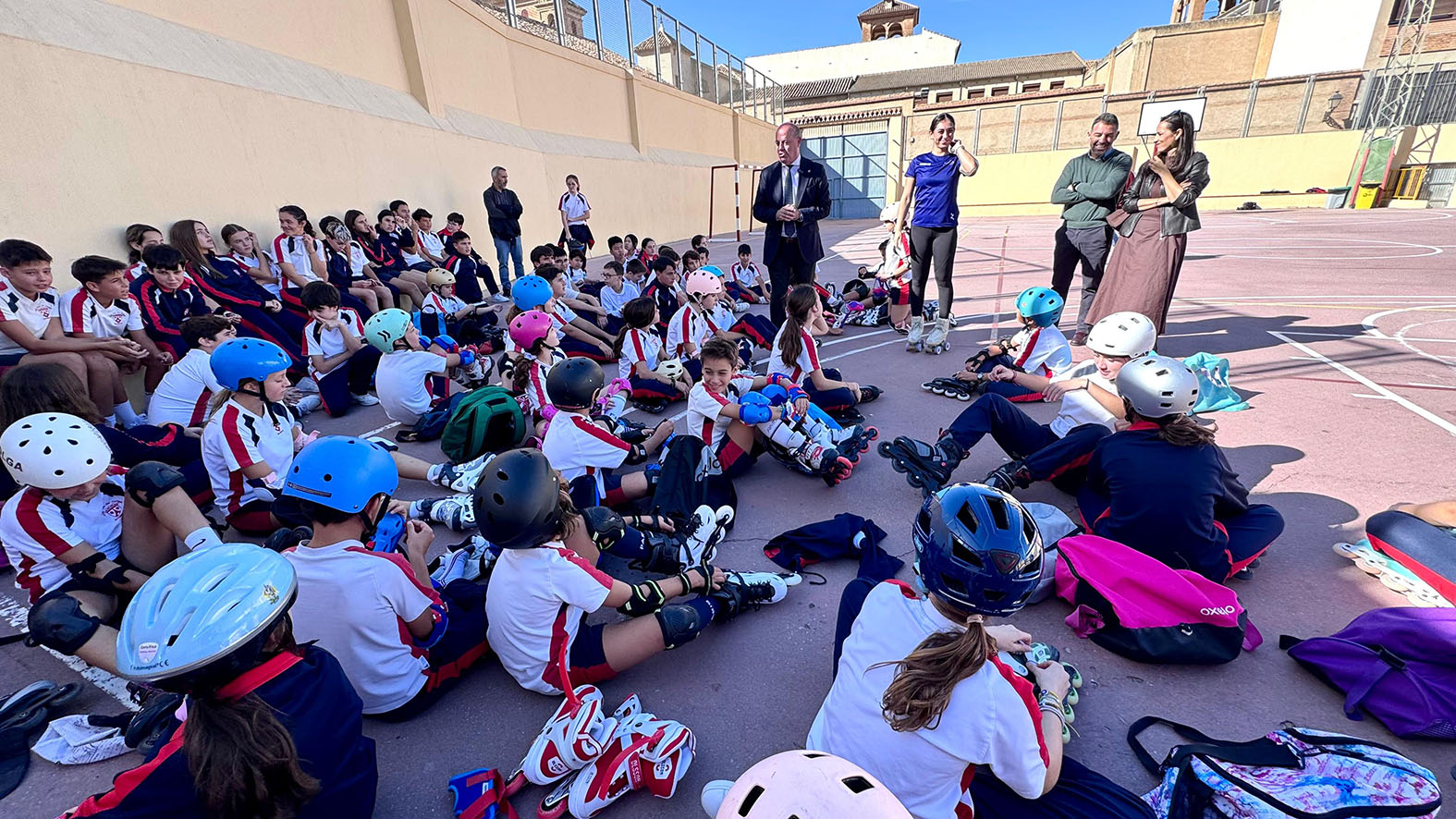 En la jornada han participado el alcalde de Antequera, Manolo Barón, el vicepresidente de la Diputación y teniente de alcalde delegado de Deportes, Juan Rosas, así como la teniente de alcalde Ana Cebrián, que han acompañado al alumnado durante esta experiencia deportiva con una de las grandes referentes internacionales del patinaje malagueño.