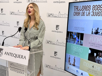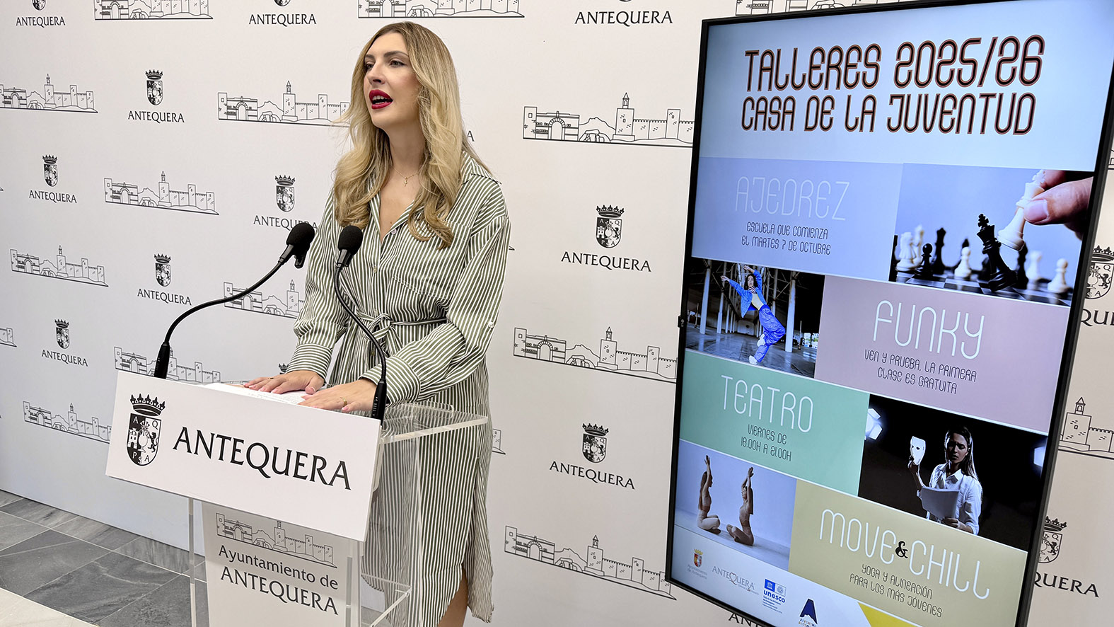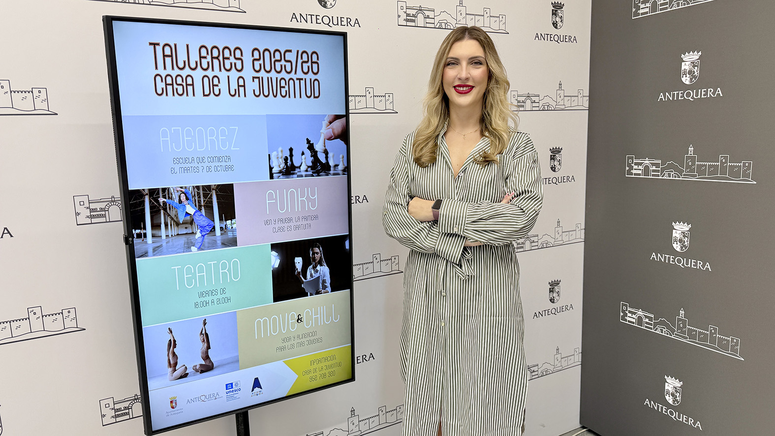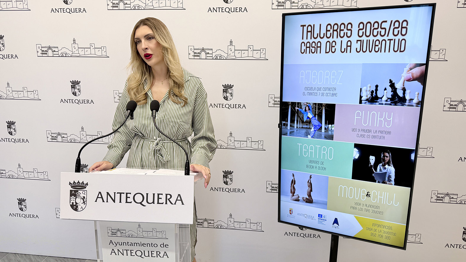 La concejal delegada de Juventud, Marta González, ha presentado en la mañana de hoy miércoles 1 de octubre la programación de talleres que se desarrollarán en la Casa de la Juventud durante el curso 2025/2026. Una iniciativa que busca ofrecer alternativas de ocio, cultura y formación a la juventud antequerana con propuestas para todas las edades, desde los 3 hasta los 25 años.