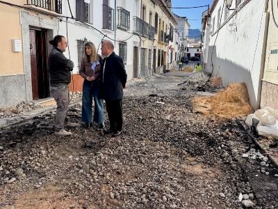 El alcalde Manolo Barón y la responsable de Obras, Teresa Molina, han visitado hoy las obras de Calle Taller y Ollas, uno de los principales proyectos de las obras PFEA de 2026.