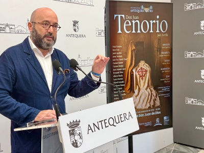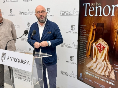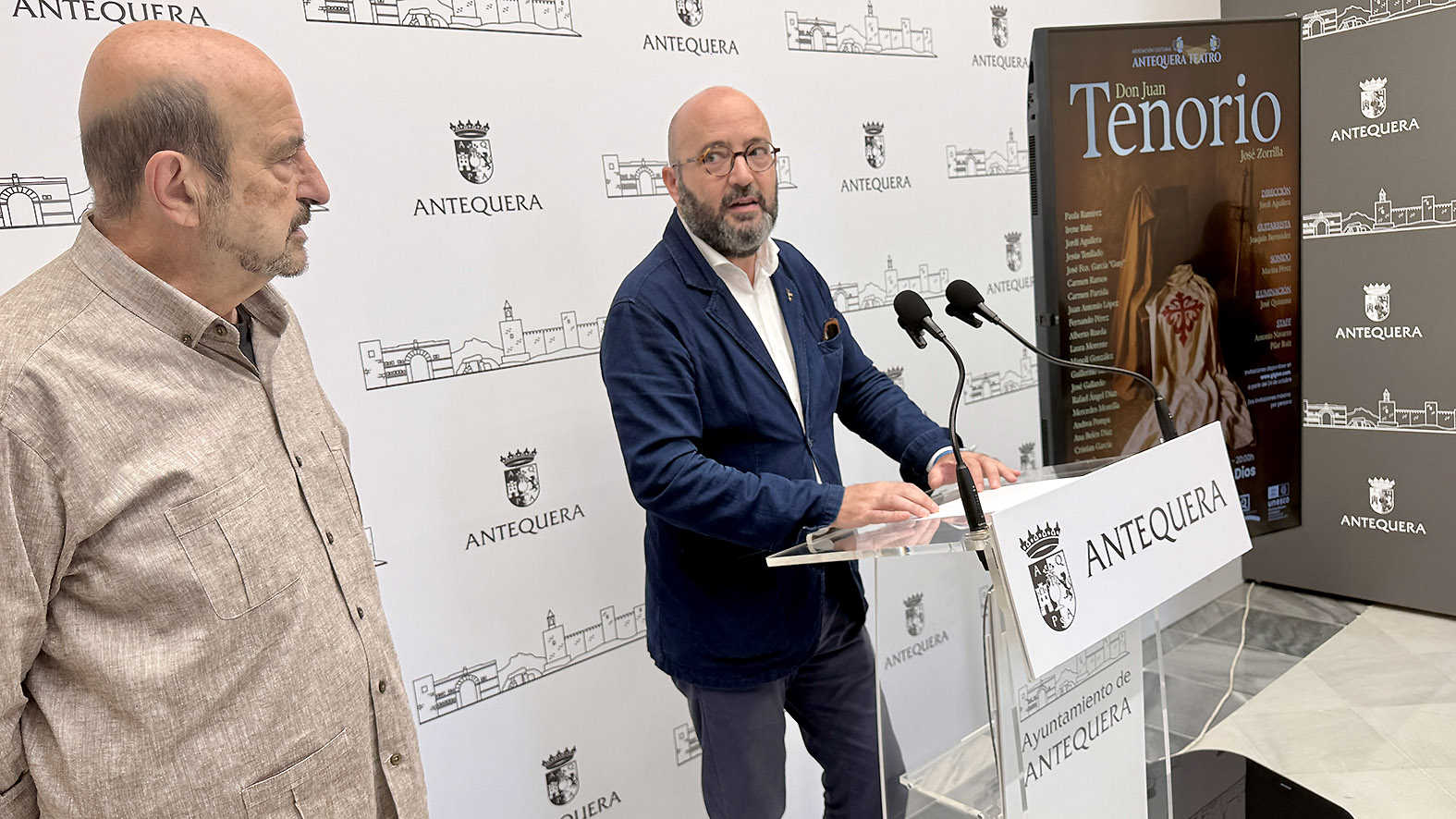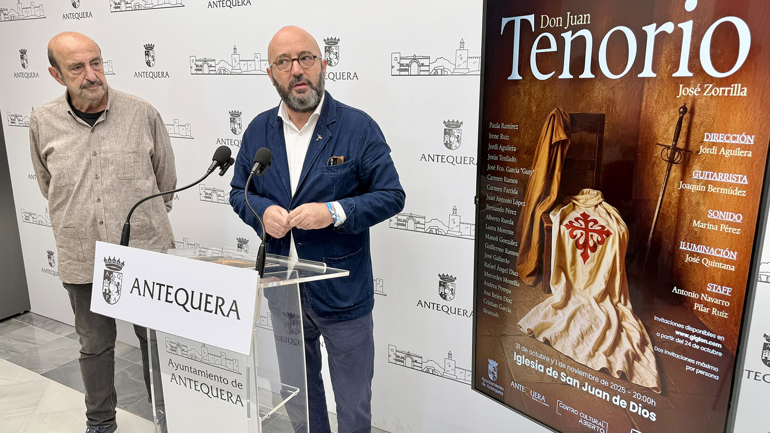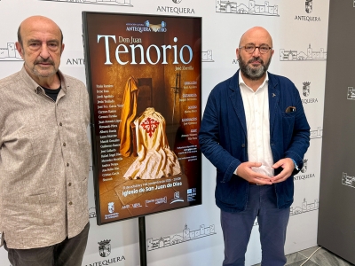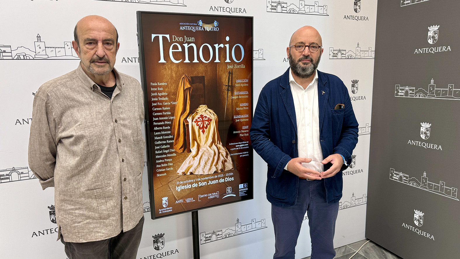 El concejal de Cultura del Ayuntamiento de Antequera, José Medina Galeote, y Antonio Navarro en representación de la Asociación Cultural Antequera Teatro, han presentado la nueva edición de la representación teatral Don Juan Tenorio, de José Zorrilla, que se celebrará los próximos 31 de octubre y 1 de noviembre a las 20:00 horas en la Iglesia de San Juan de Dios.
