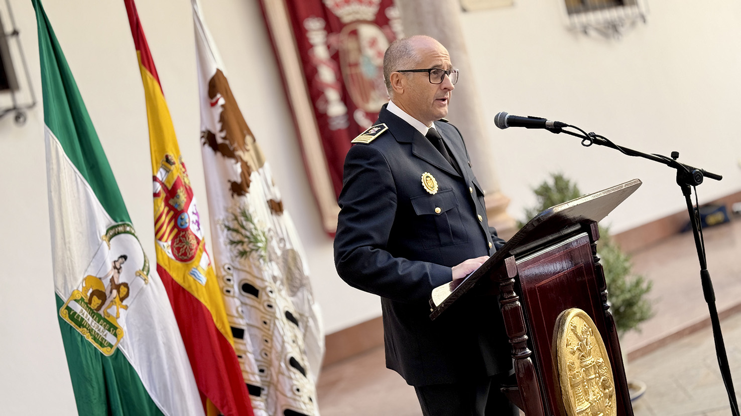 Galería fotográfica del acto institucional de conmemoración de la festividad del Patrón de la Policía Local, celebrado en el patio del edificio municipal de San Juan de Dios en el mediodía del viernes 26 de septiembre.